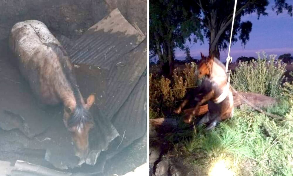Una unidad del cuartel de Bomberos Voluntarios de Ayacucho y personal de vialidad Municipal rescataron a un caballo que había caído en un pozo séptico.