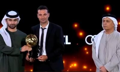 Foto: Captura TV. Lionel Scaloni, el director técnico campeón del mundo con el seleccionado argentino, fue reconocido este viernes en los Premios Globe Soccer Awards 2023...