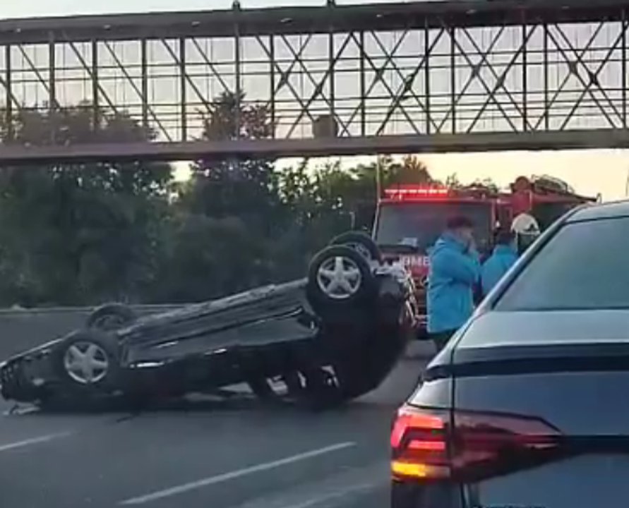 Dos vehículos que circulaban en la mañana de este domingo por la Avenida General Paz, sentido Riachuelo, chocaron y uno de ellos volcó.