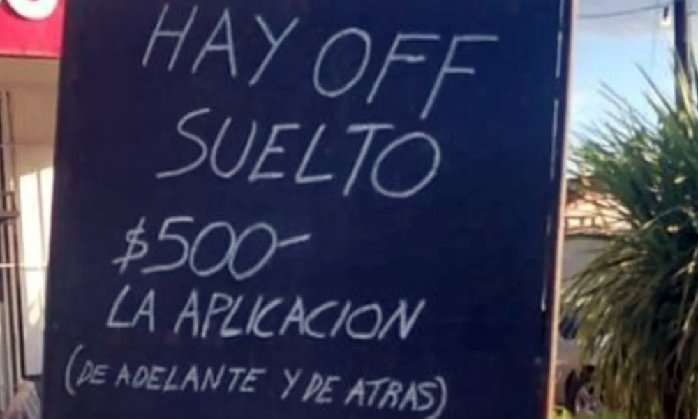 La historia comenzó a circular el lunes cuando un usuario de la plataforma X (anteriormente conocida como Twitter) compartió una imagen que rápidamente se volvió tendencia. La foto mostraba un pizarrón frente a un comercio con un mensaje que decía: “Hay Off (una marca de repelente) suelto – $500 la aplicación (de adelante y de atrás)“. La frase “Azul, no lo entenderías” acompañaba la imagen, haciendo alusión a la localidad bonaerense y utilizando una expresión popular en las redes sociales.