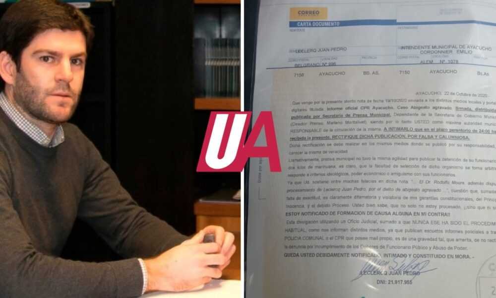 Siguen las cuestiones enlazadas con el supuesto caso de robo de animales ocurrido días atrás donde se vieron involucrados Leclercq Juan Pedro y Julio Agustín Quintana, dos ayacuchenses que señalaron que no tienen nada que ver con ese caso e incluso afirman que se trata de “falacias” ya que no están imputados ni procesados como informaron las autoridades de Ayacucho y la región. El Intendente Emilio Cordonnier fue intimado por la gacetilla emitida a través de prensa municipal el pasado lunes.