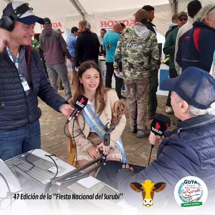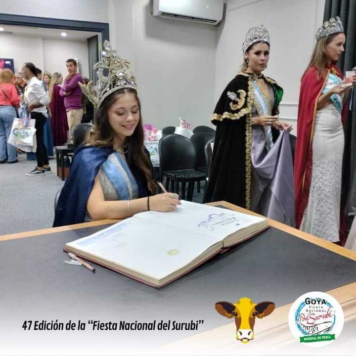 El pasado viernes 3 de mayo, la flamante quincuagésima Reina de la Fiesta del Ternero y Día de la Yerra, Rosario Lamenza, junto a su comitiva conformada por María Acosta, coordinadora de Reinas, y Liliana Iriart, miembro de la comisión, tuvo el honor de representar nuestro máximo evento en la 47° Fiesta Nacional del Surubí, celebrada en la ciudad de Goya, provincia de Corrientes.