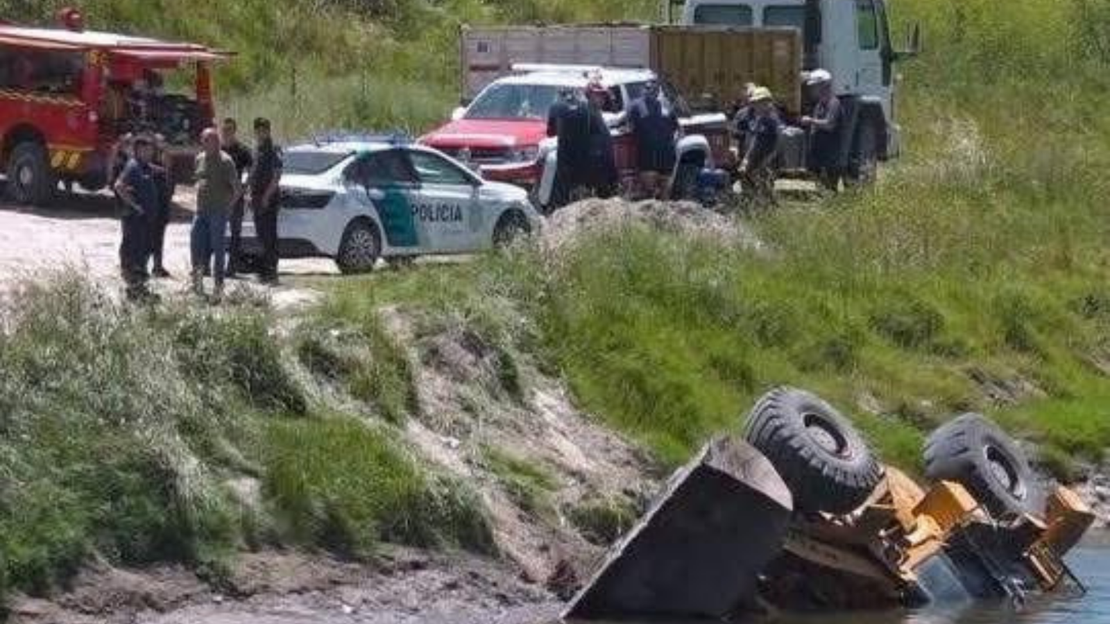 En el sitio, los efectivos constataron que una retroexcavadora había caído al arroyo. Según declaró un trabajador presente, se había retirado del sector por unos minutos mientras otro operario permanecía en la máquina. Al regresar, encontró el vehículo sumergido.