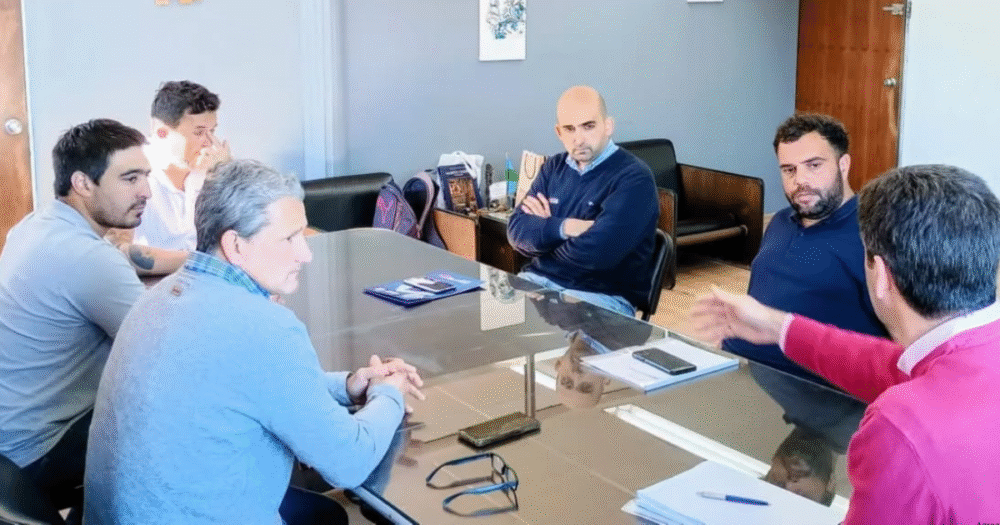 El intendente municipal de Ayacucho, Emilio Cordonnier, acompañado por el jefe de Gabinete, Hernán Naveyra, y el secretario de Ambiente, Valentín Fascia, mantuvo un encuentro con directivos de la empresa Mateo Hnos.