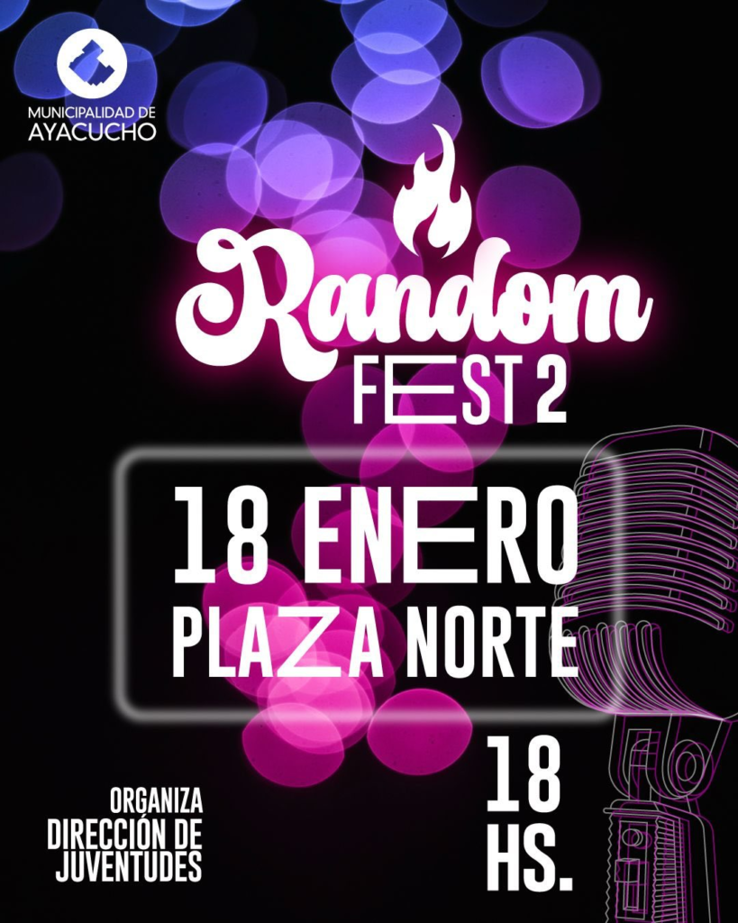 Este domingo 18, desde las 18 hs, se realizará el Random Fest 2 en Plaza Norte, con shows en vivo de cinco artistas locales y entrada libre. El evento es organizado por la Dirección de Juventudes de la Municipalidad.