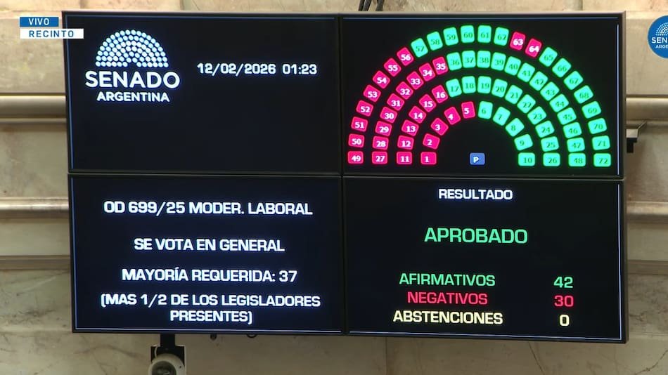 Gobierno nacional obtuvo un triunfo clave en el Senado al aprobar por 42 votos contra 30 el proyecto de modernización laboral, una de las principales apuestas de Javier Milei para impulsar la creación de empleo formal. La iniciativa ahora será girada a la Cámara de Diputados, donde el oficialismo buscará convertirla en ley antes del 27 de febrero.