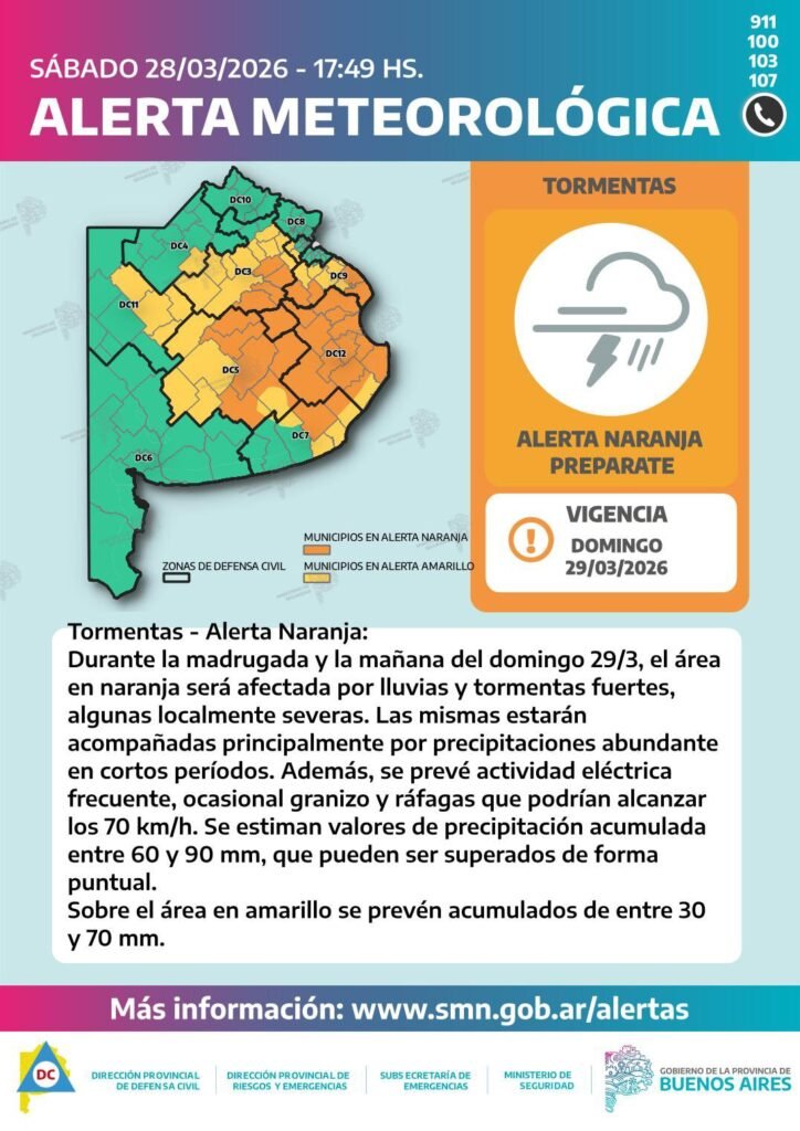Las localidades de Ayacucho, Balcarce, General Guido y Maipú, junto a zonas del noroeste de General Juan Madariaga, Mar Chiquita y oeste de General Pueyrredón, se encuentran bajo alerta por tormentas fuertes en las próximas horas.