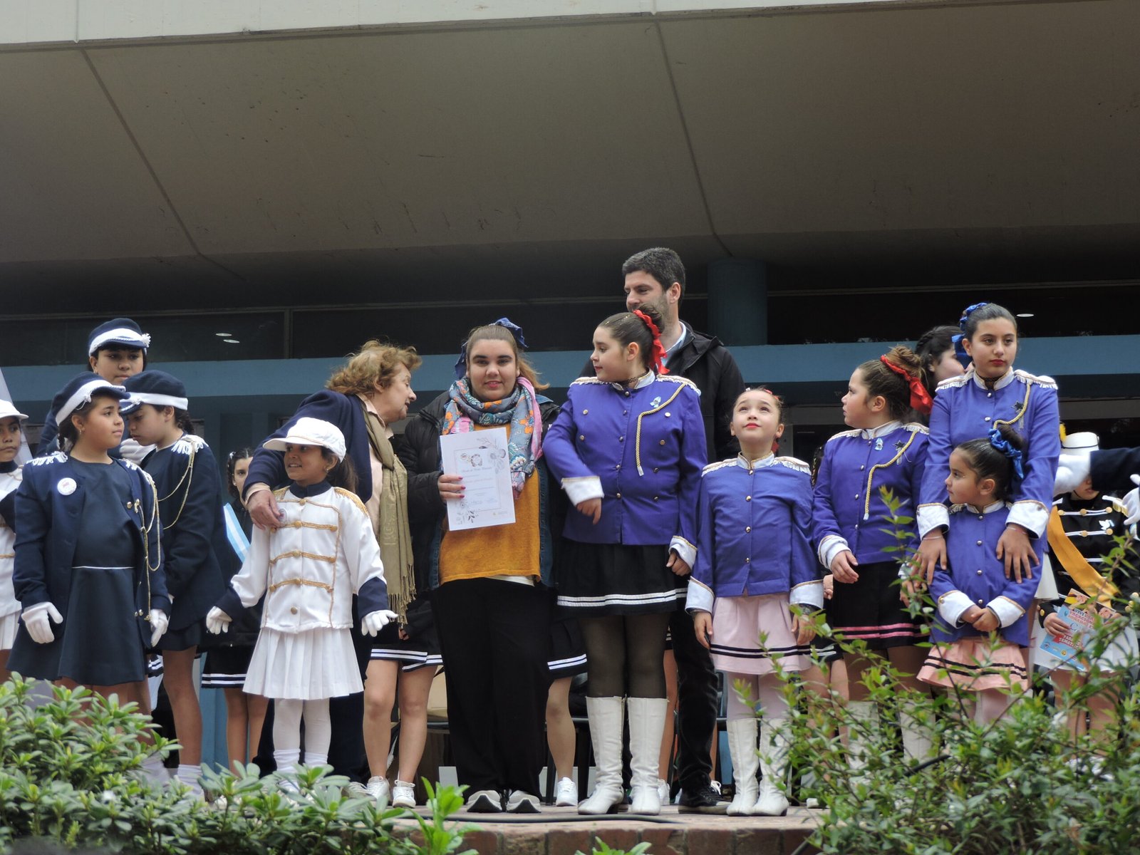 El desfile culminó en la explanada municipal, donde todas las delegaciones se ubicaron siguiendo el protocolo establecido. En este lugar se realizó la entrega de diplomas de honor, se tomaron fotos conmemorativas. El evento finalizó con una presentación festiva a cargo de la Murga Psicodélica Alegría.