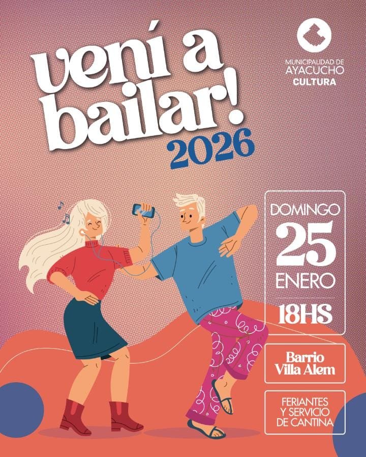 La Municipalidad de Ayacucho lanzó una nueva edición de “Vení a bailar 2026”, una propuesta cultural y recreativa que tendrá dos fechas al aire libre durante el fin de semana del 24 y 25 de enero, con música, baile y actividades para toda la familia en distintos puntos de la ciudad.