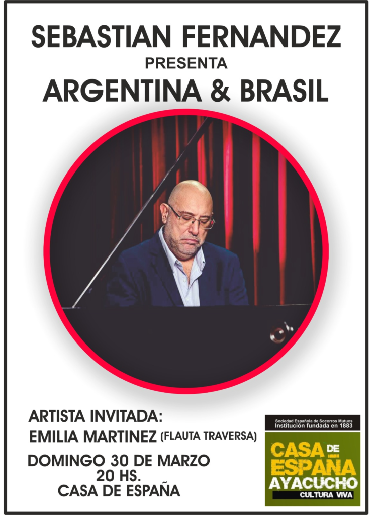 El próximo domingo 30 de marzo a las 20:00 hs, la Casa de España en Ayacucho (San Martín 1225) será el escenario del concierto “Argentina & Brasil“, protagonizado por el pianista local Sebastián Fernández y la flautista Emilia Martínez.