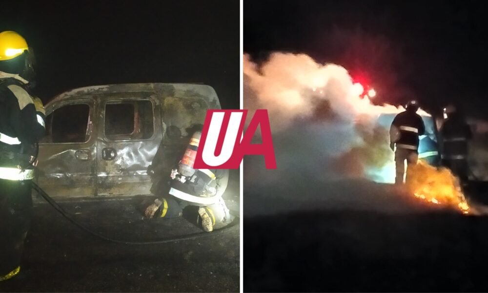 Una camioneta Peugeot Partner se incendió integra en Ruta 50 a 30 kilómetros de Ruta 29.
