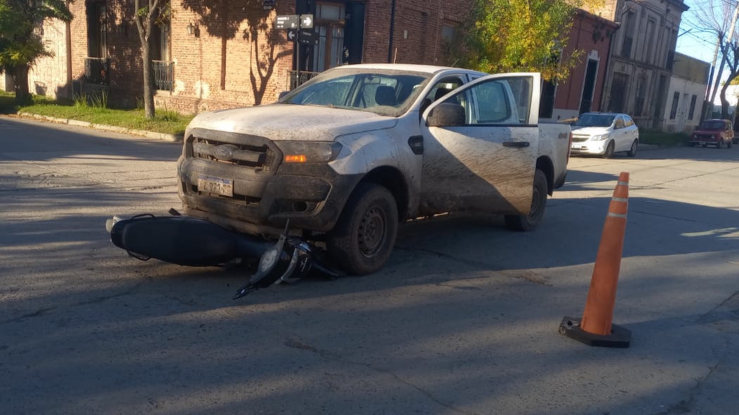 Una camioneta Ford y una motocicleta Gilera 110cc protagonizaron un accidente en la intersección de las calles Arroyo y Poderoso. La conductora de la motocicleta fue trasladada al hospital por una ambulancia del SAME con lesiones, aunque permanecía consciente durante su traslado.